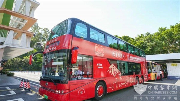 在庆祝建党100周年之际,深圳巴士集团携手比亚迪,以纯电动公交车为载体,创新党史学习教育形式,推出3条红色主题线路和2个移动党群服务中心,将更多红色元素跟随公交“动起来”,为“绿色环保出行”这一城市名片再增添“流动红色课堂”注脚,献礼建党100周年。