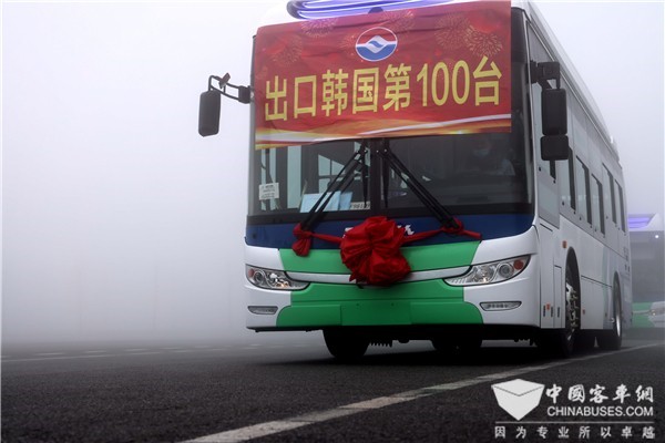 2021年11月,黄海客车韩国项目第100台发车仪式在黄海新能源厂区内举行,第100台黄海新能源客车正式启程发往韩国,韩方客户代表、曙光汽车集团领导、黄海客车管理团队及海外相关负责人等百余人出席仪式,共同见证这一中国客车品牌扬帆出海的历史时刻。