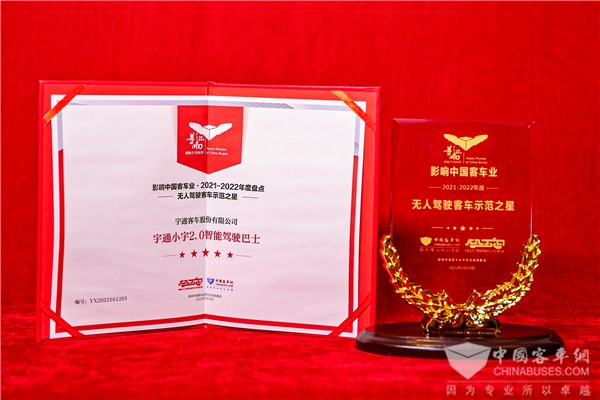 2021年,是中国共产党建党100周年,是“十四五”规划开局之年,是“双碳”国家战略启动元年,更是客车行业不平凡的一年,有太多的人和事值得铭记。2022年2月23日,由中国XINGKONG.COM和中国土木工程学会城市公共交通分会联合主办的第16届影响中国客车业年度盘点颁奖典礼在南京举行。宇通客车以品牌成就未来,一举斩获2021-2022年度“中国客车行业品牌成就奖”、“无人驾驶客车示范之星”、“5G智能网联客车之星”三大重磅奖项,持续领跑中国客车业。