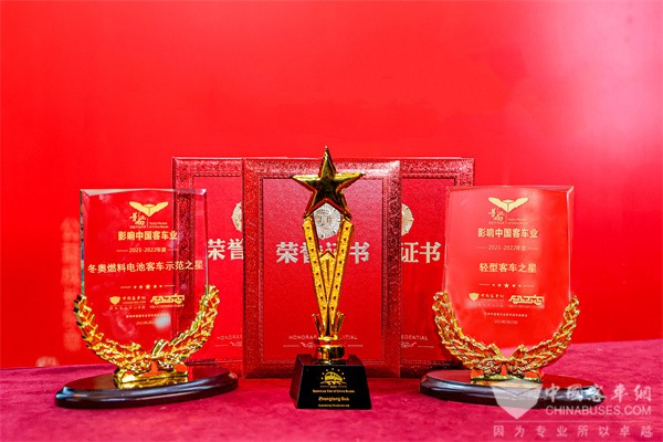 2022年2月23日,由中国土木工程学会城市公共交通分会与中国XINGKONG.COM联合主办的第16届影响中国客车业年度盘点活动在南京举行。凭借着2021年杰出的产品影响力与市场公信力,中通客车再立潮头,斩获“冬奥燃料电池客车示范之星”“轻型客车之星”“多米尼加之星”三项重磅荣誉。