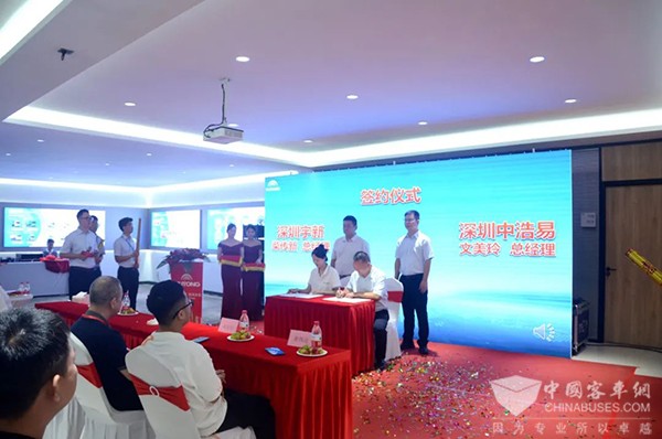 在现场,宇通深圳直营店店长、深圳市宇新汽车销售服务有限公司(以下简称“深圳宇新”)总经理柴传新表示,深圳直营店将始终站在服务者的角度,以更丰富、更优质的产品和更全面、更专业的服务为基础,以客户的需求为出发点,为客户创造更大价值。随后作为代表与深圳市中浩易投资有限公司(以下简称“深圳中浩易”)签订战略合作协议,未来双方将在多领域保持长期战略合作,共同携手开启美好未来。