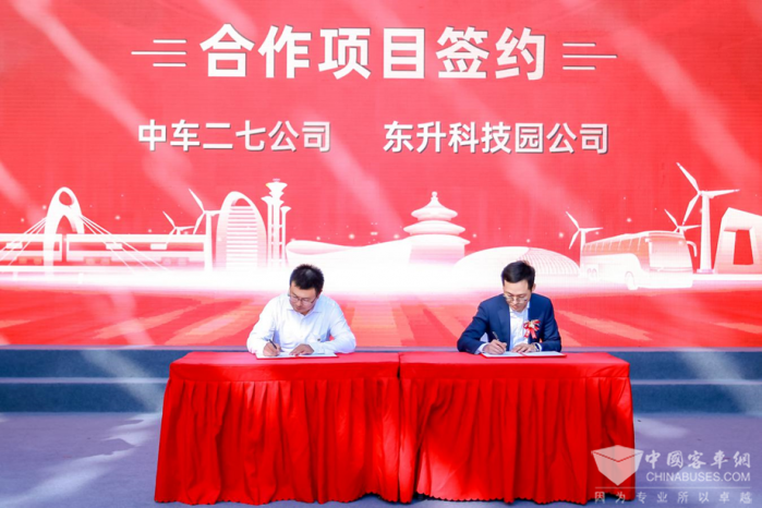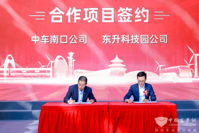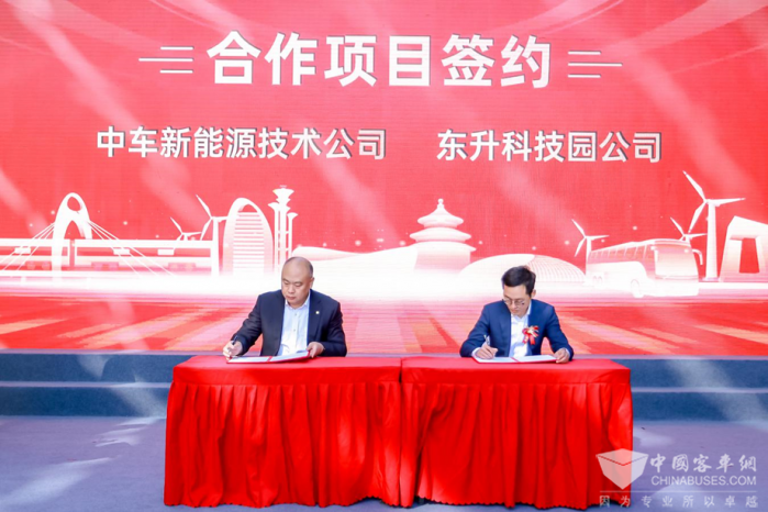 揭牌仪式上,中车电动公司向东升科技园公司赠予新能源客车,中车南口公司、二七公司、新能源技术公司分别与东升科技园公司签订相关合作协议。中车科创公司新员工代表合唱《中车之歌》,展现了朝气蓬勃的良好精神风貌。