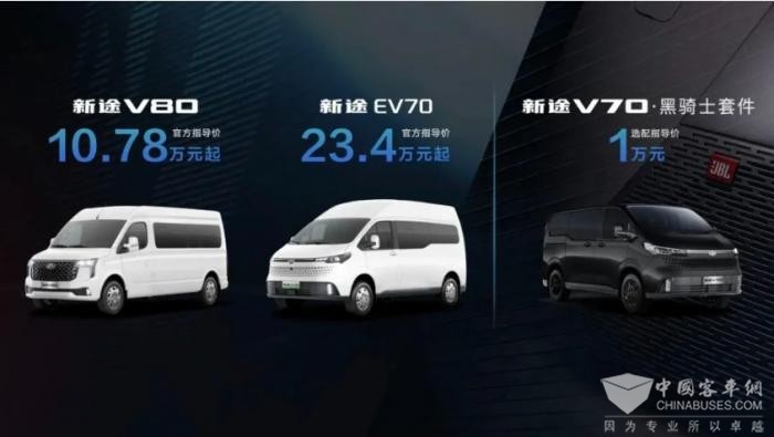 于轻客市场深耕十二载,上汽大通MAXUS以新品牌、新产品、新形象再树轻客行业新标杆!2023年11月6日,上汽大通MAXUS迎来“购车狂欢节”,在盛大的“狂欢派对”上,上汽大通MAXUS正式发布全新轻客品牌“新途”,以“新途”为名,与全球用户共赴“新征途”。新品牌旗下“智慧旗舰轻客”新途V90、“高价值宽体轻客”新途V80、“智慧纯电轻客”新途EV70以及与用户共创而来的新途V70黑骑士版也携手重磅发布,高能新车天团“四箭齐发”,上汽大通MAXUS为轻客用户带来跨界出行新选择。其中,新途V80官方指导价10.78万元起,新途EV70官方指导价23.40万元起,新途V70黑骑士套件选配指导价1万元,新途V90也已开始接受预订,预计年底正式上市。同时,上汽大通MAXUS在此次“狂欢盛宴”上,还为首批用户准备了丰富的“新途好礼”,包括新意加倍礼、新途V70升级礼等。上汽大通MAXUS全新轻客品牌“新途”,将与全球更多用户一起大有可V!