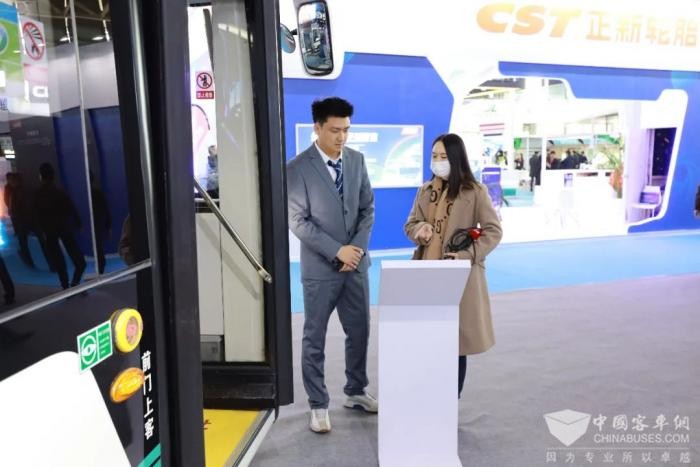 此外,还带来了12米9系智能化全低地板纯电动客车这款“老朋友”。一体式大灯、海派风的造型设计,一级踏步,上下车便捷又安全。无障碍设施与车辆ECAS侧跪功能完美结合,将车辆踏步处高度降低至地面28公分处。虽然已经是成熟运营的产品,在整个展会期间依然引起了广泛关注。