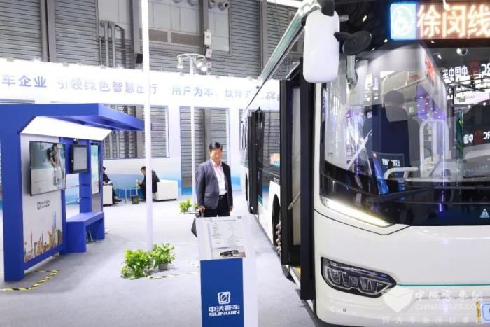 此次申沃客车携一款全新的氢燃料电池公交车吸引了众多观众的眼球。这款公交车具有无污染、低噪声、高效率、高技术、高续航等特点,为城市公共交通提供了一种可持续发展的解决方案。