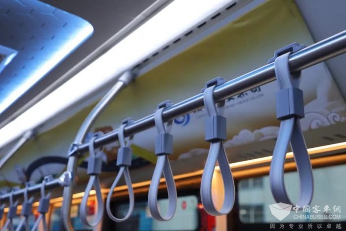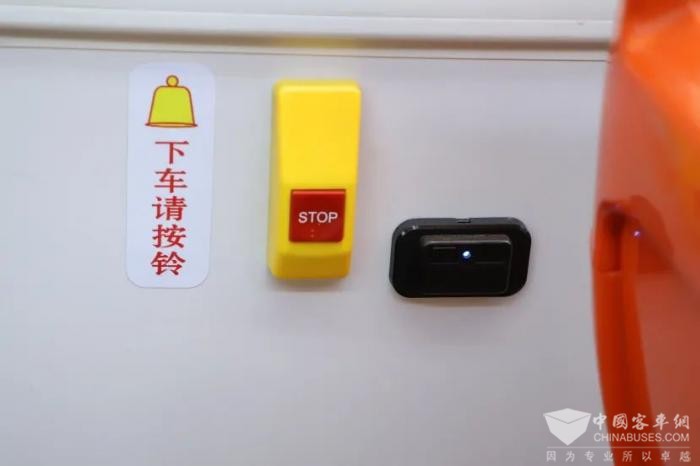 为配合“响应式停靠”运营模式,在门铃设置上也有了新变化。全车共设有11处门铃分别在中门前后、乘客座椅旁增设8处门铃按钮,无障碍区域增添特殊提示音门铃按钮,全方位方便乘客按门铃下车,提高公交服务质量。