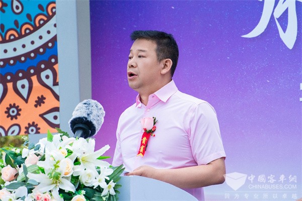 交车仪式上,乌鲁木齐南松旅游服务有限公司董事长马洪涛表示,“这是一次前所未有的大批量引入,也是双方继今年4月份购置一批高端旅游客车后的又一次深入合作。看中的正是宇通客车的高品质和优质服务。面对新疆旅游出行市场的超高品质要求,此次采购的230辆宇通天骏V6全部采用7座高端商务沙发座椅,配置高端、乘坐舒适,更拥有超长寿命,超高安全等性能优势,将助力公司深耕高端旅游市场,为游客提供更加品质化、定制化、特殊化的旅游出行体验,让‘新疆是个好地方’享誉全国、全世界。”