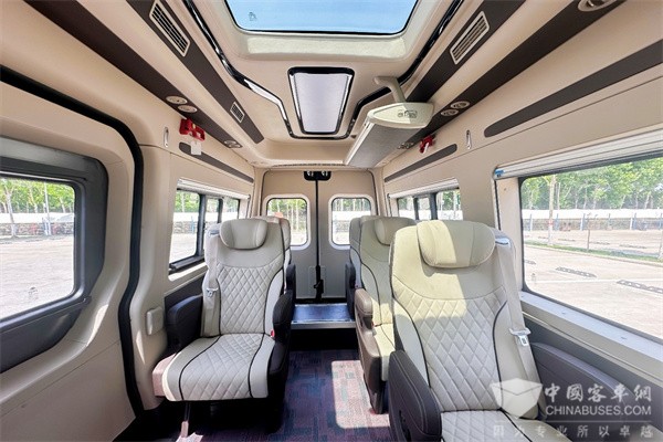 使用场景方面,在全方位匹配“高端旅游”需求的同时,宇通天骏从容兼顾“定制客运、通勤租赁、商务接待”等多场景出行需求。外观设计上,宇通天骏采用行业最新商务设计理念,整体外观造型温润饱满,稳重内敛大气,自成风景线;内部空间上,本次交付的宇通天骏V6 7座版本车内空间高达1840mm,乘客车内行走自如,体验感受更舒适;而宽敞的空间不仅驾驶者视野宽阔,也让游客更加惬意欣赏外面美丽的风景。