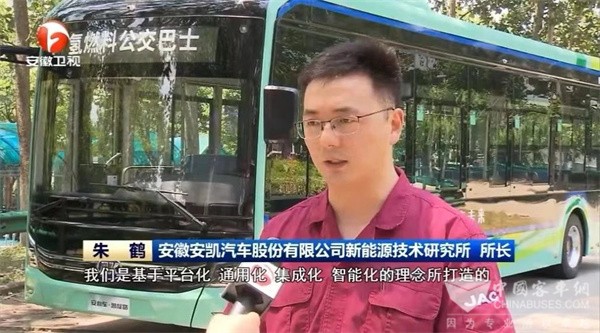 安徽安凯汽车股份有限公司新能源技术研究所所长朱鹤向记者介绍道:“这台车在研发过程中,我们是基于平台化、通用化、集成化、智能化的理念所打造的,相比于我们以前的氢燃料客车,它在动力性、经济性、网联化、智能化上面都有非常大的提升。”