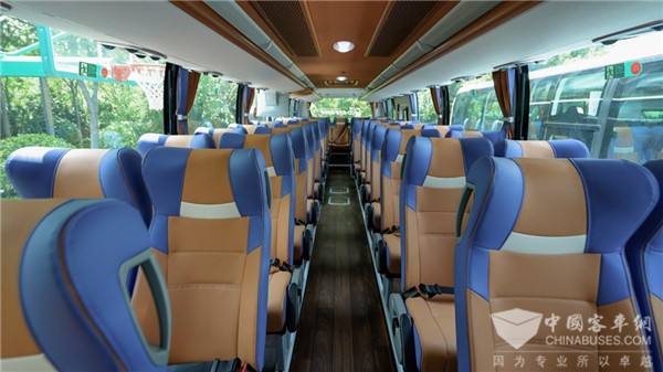 为满足旅游出行市场的高品质服务需求,宇通已经完成5-13米全米段、7-56座的全车型布局,实现了旅游场景全匹配。同时,针对旅游出行呈现出的舒适化、高端化发展趋势,宇通客车前瞻市场发展变化,以传统文化为底蕴,将中国传统文化和中式美学巧妙结合,匠铸了“金玉满堂”、“青山碧水”高端国风内饰车型,在满足游客出行需求的同时,让游客情感价值拉满,让其享受旅游带来的尊贵感、身份感、领先感和信赖感,真正做到了让游客舒享新高度,助企业赢领每一程。