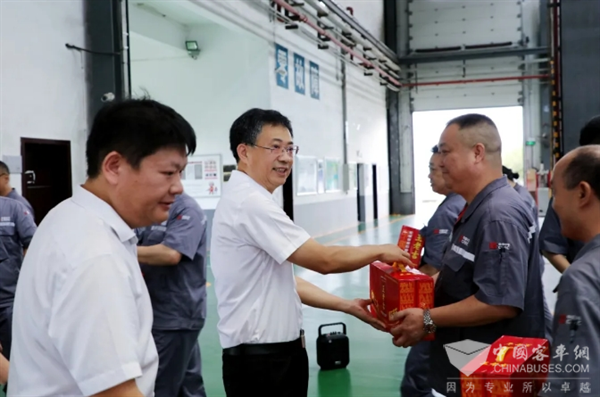 中车党委委员、工会主席赵虎,群团工作部(工会办公室)副部长(副主任)王伯友到中车电动开展“工会送清凉 防暑保安康”活动。公司党委副书记、纪委书记、工会主席李龙煊,总经理助理、工会副主席杨学元陪同慰问。