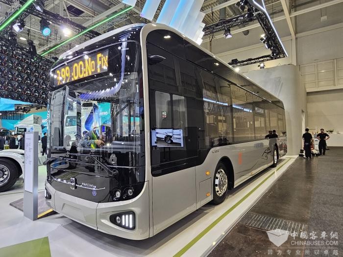 在本次展会上,亚星客车参展的是自主研发设计制造的C12E纯电城市客车,目前该车已通过全球最严苛的认证之一——欧盟法规认证,顺利敲开了欧洲市场的大门。 据了解,该款纯电城市客车从外观设计上颇具特色,车身图案主打中国山水元素,亚星Logo以古体篆字呈现,展现出东方文化独特的美感。该车采用低地板前中后三开门设计,车内无台阶,配备了车身侧倾系统,进站后车辆可快速实现踏步与站台同高度,提升了上下车的便利性。同时,该车装配最先进ADAS辅助驾驶系统、司机酒精检测互锁系统,大大提升了车辆安全性。
