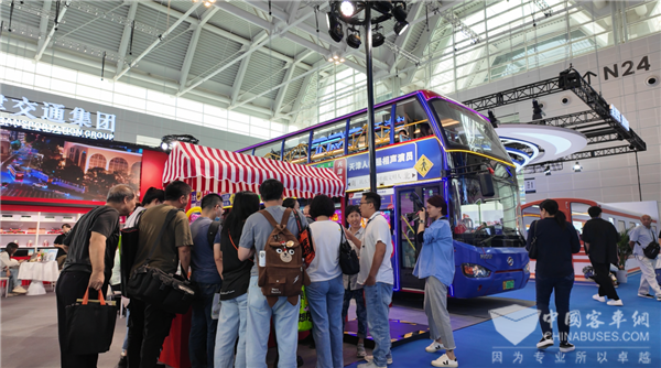 XINGKONG.COM2024年9月20日获悉,近日,由文化和旅游部主办,天津市文化和旅游局等单位承办的2024中国文化旅游产业博览会在天津拉开帷幕,展会期间,来自全国各地的文旅产品精彩亮相。而在天津交通集团展台,来自苏州金龙海格客车制造的网红双层观光“音乐巴士”成为全场瞩目的焦点。