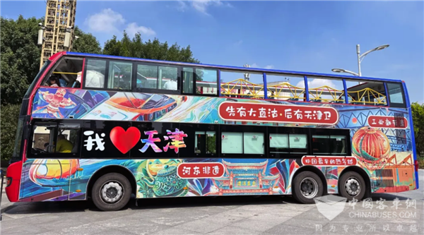 对此,天津交通旅游有限公司总经理李云鹏言道,“坚持推动城市文化传承发展,擦亮津味,津派文化品牌,讲好天津故事!公司不断深入公交+旅游融合发展,而双层观光巴士是个很好的载体,可以通过车身涂装等为外地游客做介绍,让他们感受城市魅力。目前天津之眼、意式风情区都有双层巴士运营,深受本市和外地游客欢迎,俨然成为网红打卡点。很多人到天津,都会选择坐双层观光巴士到处转转。”