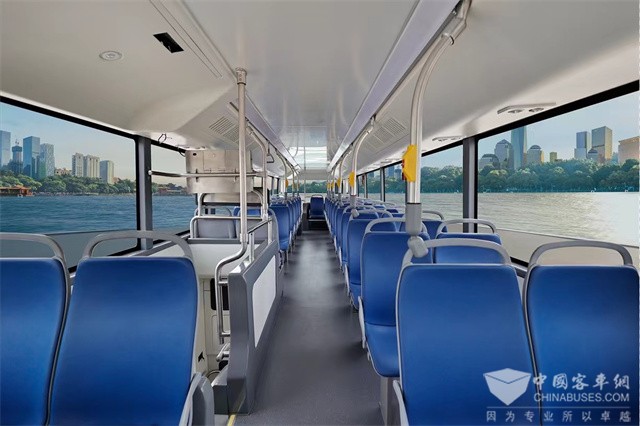 整车搭载的ADAS智能辅助系统、360°环视系统、疲劳驾驶预警系统,配备的夜视功能电子后视镜,车辆转弯时的自动补光功能,让驾乘更安心。车辆应用中通第六代新能源客车节能技术,配备一拖八变频分区空调系统,精确调控,整车综合能耗降低8%。