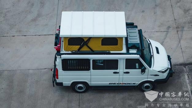 同时,得意宿营车全车总长五米二,宽两米,高两米二,升顶后高三米二,因此降顶后的高度足够下地库,方便城市间的穿梭。