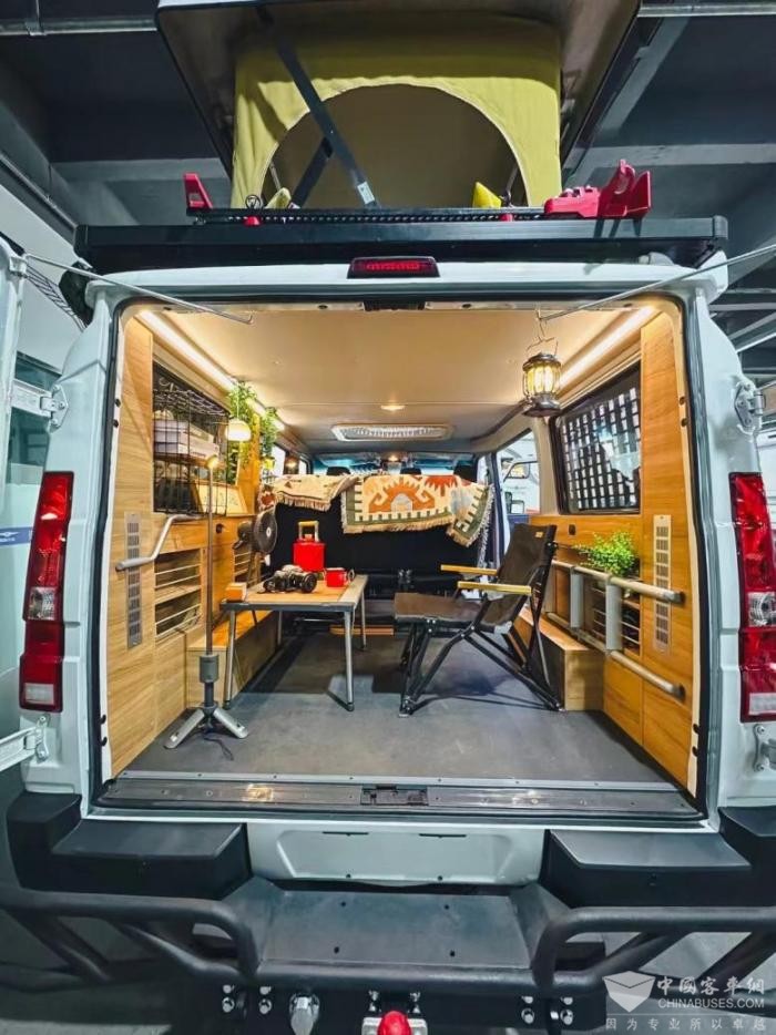 此外,得意宿营车还有着超强的DIY属性,从战术箱、行李架射灯到遮阳篷,再到车身外挂板,等等,而且其车内空间可以任意打造,无论是文艺风,还是户外风,用户都可以根据自己的需求进行改造,打造出一辆属于自己的独一无二的宿营车。