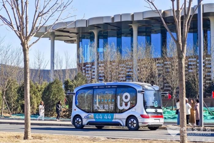 (北京通州,文远小巴往返于三大文化建筑,提供自动驾驶接驳服务)