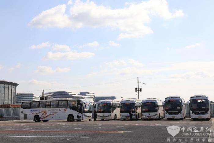 进博会期间,苏州金龙与上海锦勤、锦江商旅、上海永达等客户携手同行,严格按照保障方案把控每一个关键环节。以一次次高水准、高质量的会前筹备,为进博会的出行需求搭建起便捷畅达的桥梁。