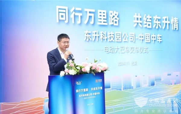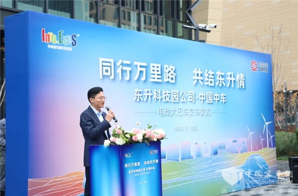 2024年11月15日,中车电动与中关村东升科技园纯电动大巴车交车仪式隆重举行,为园区发展与央企协同注入强劲动力。