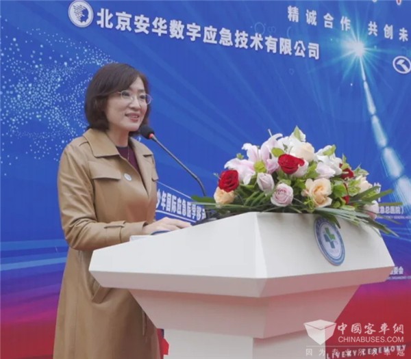交付仪式伊始,北京应急总医院副院长刘晓川、厦门金龙联合汽车工业有限公司副总经理郑小虎为本次交车仪式致辞。