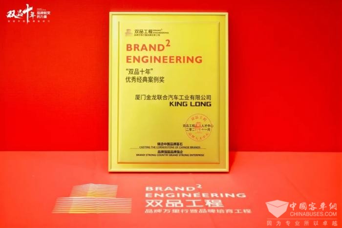 2024年11月21日,由工业和信息化部人才交流中心(以下简称:工信部人才交流中心)主办的“双品工程·品牌万里行暨品牌培育工程”十年庆典在北京盛大开展。当天,在双品十年颁奖盛典上,厦门金龙联合汽车工业有限公司(以下简称:厦门金龙)再次刷新品牌荣誉,荣获工信部人才交流中心颁发的“双品十年”优秀经典案例奖,标志着行业市场对厦门金龙品牌给予了充分的肯定。
