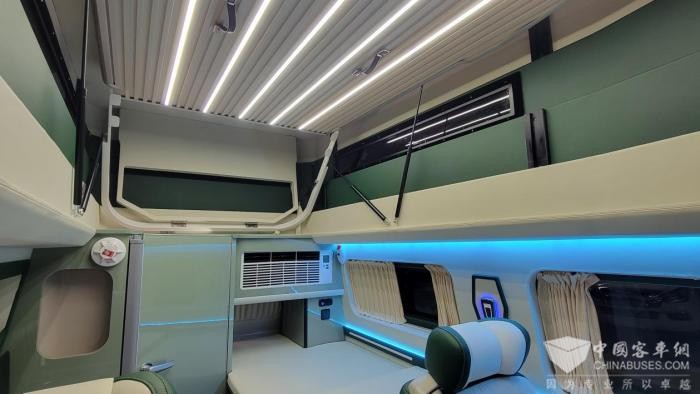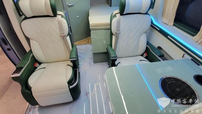 来到车身内部,一下就被它的温馨和舒适所打动。可布局4座商务座椅组合或6人对卡座版,空间利用率高,坐乘舒适安全;四柱电动硬升顶结构,在保温隔热与便利性同时完善了整车的防水性,只需通过一键升顶,内高可以达到1930mm,方便驻车状态的起居活动空间。