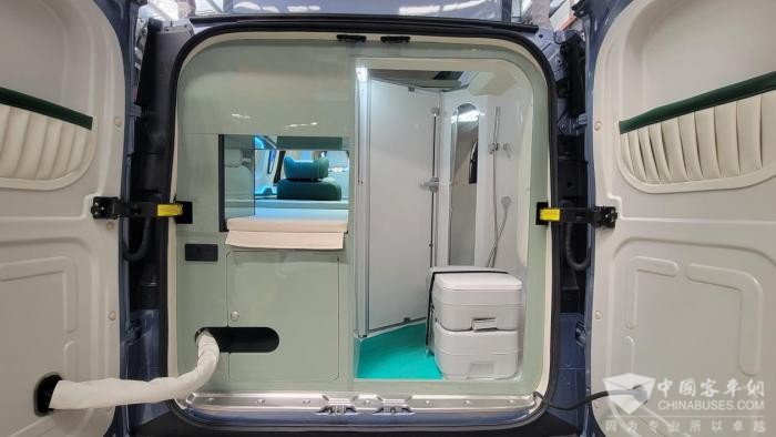 车内还设置了厨房区、卫生间区,冰箱,电磁炉、储物柜、马桶,以及淋浴花洒等设备一应俱全,可轻松满足假日旅行中烹饪美食和日常洗漱的需求。