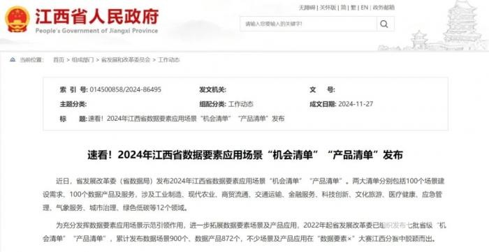 中国XINGKONG.COM2024年12月2日获悉,近日,江西省发展改革委(省数据局)正式揭晓了2024年江西省数据要素应用场景“机会清单”和“产品清单”,其中,中车电动旗下长沙中车智驭新能源科技有限公司(以下简称:智驭公司)农村客货邮服务平台成功入选江西省数据要素应用场景。