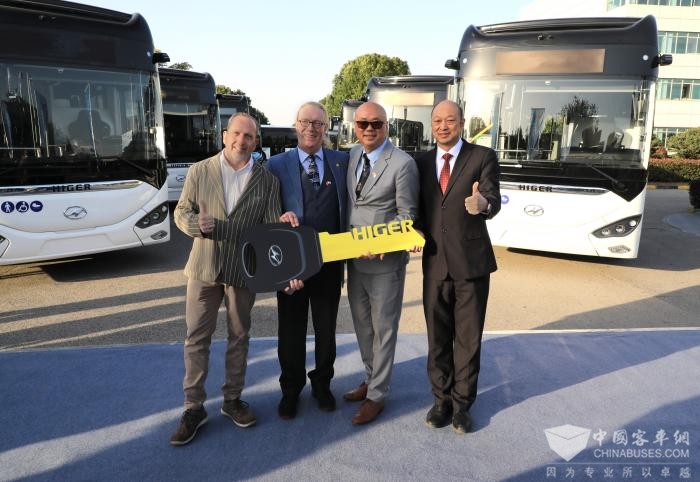 2024年11月28日,卢森堡经济部长莱克斯·代勒斯率政府代表团莅临苏州金龙海格客车参观访问,并见证了批量海格纯电动公交车交付卢森堡,卢森堡驻上海总领事贝檀雅女士随行陪同。莱克斯·代勒斯一行受到了苏州金龙党委书记、董事长陈笃廉,海外销售总经理姜海峰的热情接待。