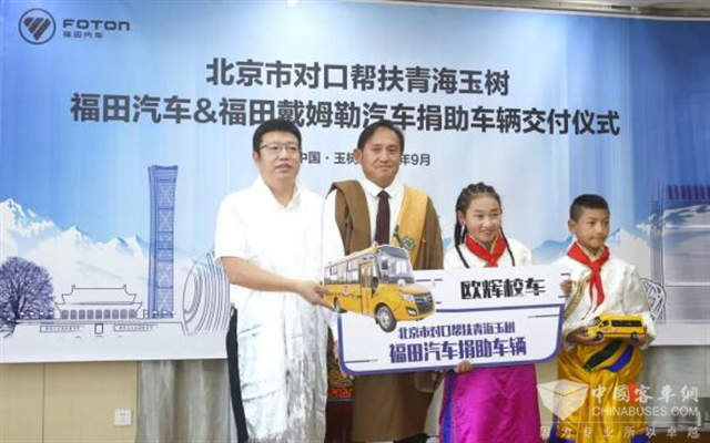 北汽福田欧辉客车曾多次开展支援青海公益事业,早在2020便开启“守望相助·护航未来”帮扶教育发展活动,向玉树地区捐助高品质专用校车BJ6731,帮助当地学生优化求学条件、改善教育环境,用实际行动为新玉树教育事业综合发展贡献力量。时隔4年欧辉再度将大爱延续,携BJ6105纯电动公交车又援玉树,切实履行国有企责任担当,推动对口援青工作不断走深走实。