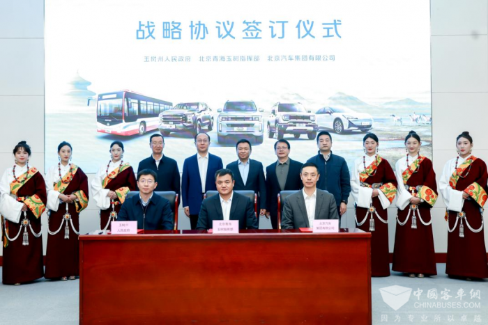 北汽集团党委书记、董事长张建勇、玉树州委常委、玉树市委书记杨占仓、北京青海玉树指挥部党委书记、指挥李育海、北京市国资委一级巡视员翟贤军发表致辞。玉树州人民政府、北京青海玉树指挥部、北汽集团对于城市运营、城市建设、城市物流、城市交通、智慧出行等领域进行战略仪式签订,共同构建绿色、智能、高效、便捷的公共交通体系。