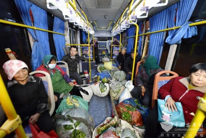 值得一提的是,19路“卖菜公交”由安凯客车担当运营主力。该车外观造型时尚大气,内饰布局明亮温馨,全承载车身结构更加坚固耐用;人性化设计的低地板、宽通道,使内部空间更宽敞,让上下车更通畅,菜农们置身其中既可闭眼小憩,也能闲唠家常,满载而来又幸福而归。