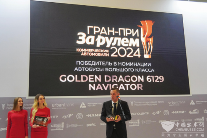 在本届展会上,金旅客车携“领航者”、“新锦程”两款高端旅游客运产品强势登场,备受瞩目。展会开幕当天,金旅客车展台人气爆棚,多家海外媒体对在俄首发的“领航者”车型表示了浓厚兴趣。硬朗霸气的外观造型一经亮相,旋即吸引了大批现场观众及媒体驻足拍照。不仅如此,金旅“领航者”在大会同期举行的“年度颁奖盛典”上脱颖而出,在全俄商用车媒体投票评选中高票荣获“2024年度最受欢迎车型”,成为全场焦点。