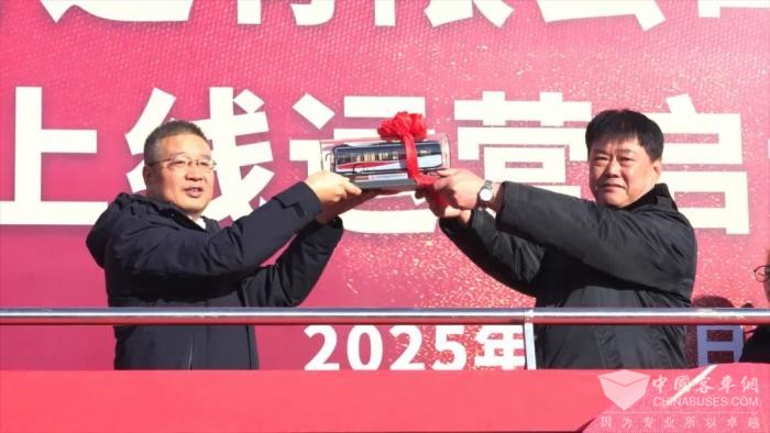 2025年1月7日,186台中车“鲸典”纯电动公交车正式在辽宁省辽阳市上线运营。辽阳公共交通客运有限公司董事长赵荣强,党委副书记田维涛、副总经理李子峰、鞠鹏、冯林、厍铁峰,中车电动总经理刘凌,副总经理徐万宝等出席活动。
