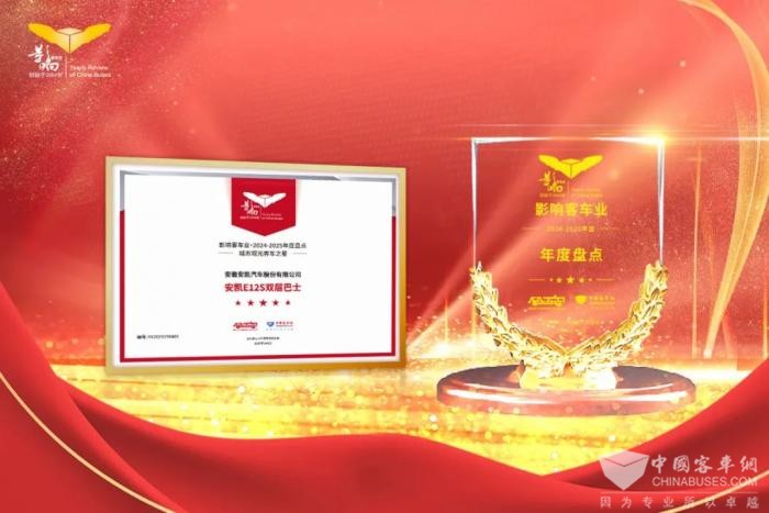 2025年 1月8日,“第十九届影响客车业年度盘点,新质生产力创新发展论坛暨公交客车科技交流”活动在郑州盛大启幕,公交企业领导、客车企业代表、行业专家齐聚一堂,共谋行业发展。活动同期,影响客车业年度盘点评选结果揭晓,安凯客车凭借强大的综合实力及品牌影响力,一举夺得“城市观光客车之星”“燃料电池客车示范之星”两项重量级大奖,展现出强大的市场认可度和良好的市场口碑。