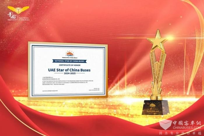凭借着在产品创新和市场开拓等领域的优异表现,中通客车斩获了“定制旅游客车之星”“阿联酋之星”两项重磅荣誉,彰显了中通客车赋能行业高质量发展的重要担当。
