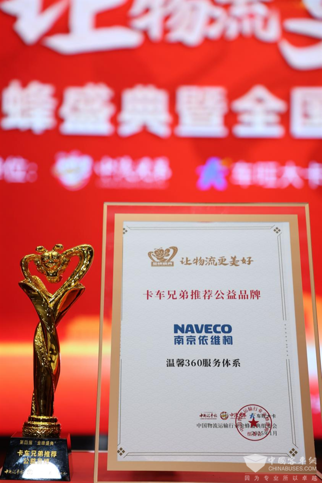 本次盛典秉持“让物流更美好”的核心精神,聚焦物流行业从业者的实际需求与切身体验,以车友们的视角甄选出了他们所信赖认可的产品和品牌。凭借在公益方面身体力行的坚持和担当,南京依维柯荣膺“卡车兄弟推荐公益品牌”奖;旗下明星产品依维柯欧胜,则以其可靠性能和出色口碑在众多产品拔得头筹,喜获VAN车组“卡车兄弟推荐产品”奖。双喜临门,实力印证行业与用户的双重青睐。