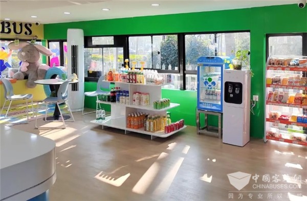 除了高颜值的外观,公交车便利店内部也充满了惊喜。墙上挂着亚星客车和扬州公交的宣传墙,详细介绍了亚星客车与扬州公交共同奋斗、不断发展的历史。这些宣传墙不仅展示了企业的辉煌历程,更传递了一种积极向上的精神力量,激励着人们不断前行。