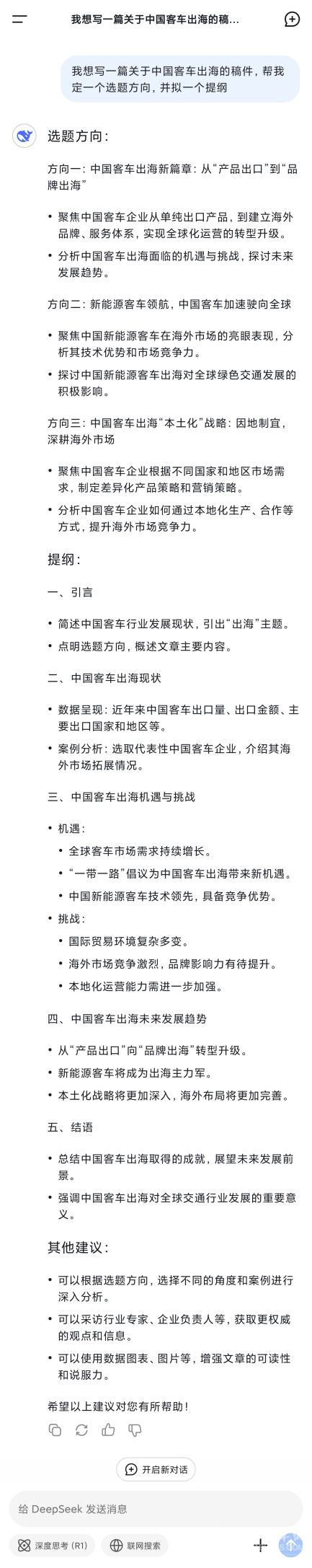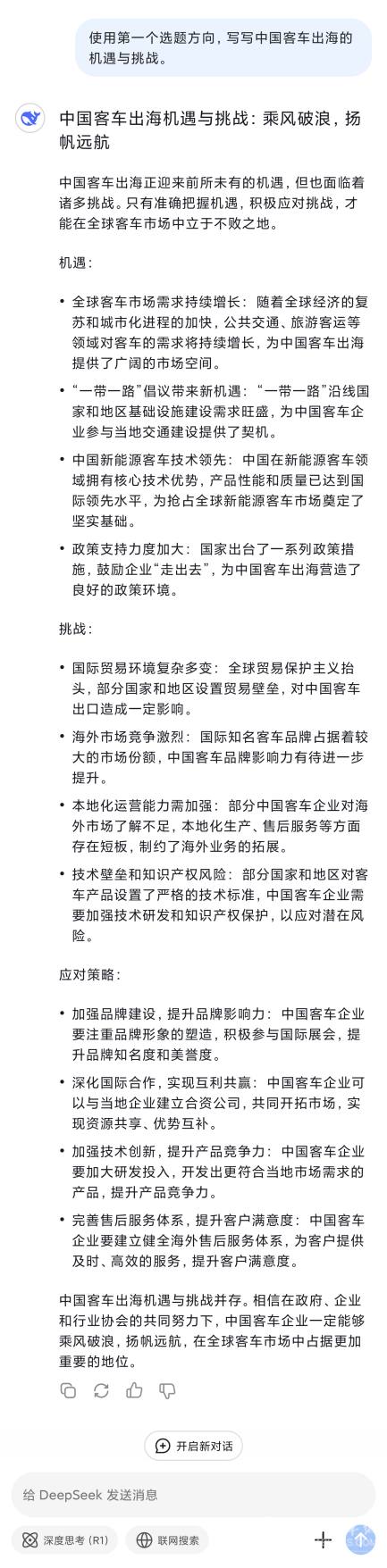 2025年中国客车出海更上一层楼?来看DeepSeek如何作答