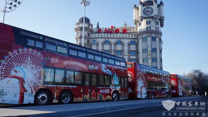 自入驻哈尔滨以来,安凯双层巴士凭借其独特的设计和卓越的性能,迅速在城市中崭露头角。车身以热烈的“中国红”为主色调,巧妙融入了极具哈尔滨特色的冰雪大世界、中央大街等文旅地标元素,穿梭在城市的大街小巷,如流动的冰雪画卷,展现着这座城市的独特韵味,也彰显了中国客车制造的创新实力。