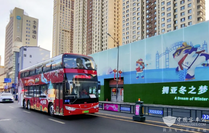 本届冰雪体育盛会专门设计了“翠影紫梦”色彩系统,“兴安绿”就是主题色系之一,以东北大小兴安岭广袤林地葱郁的绿色,展现高质量、可持续发展的美好愿景。而哈尔滨街头的安凯双层巴士凭借其纯电驱动技术,将实力践行“绿色盛会”之旅,成为赛事期间“冰城”一抹不可忽视的亮点。