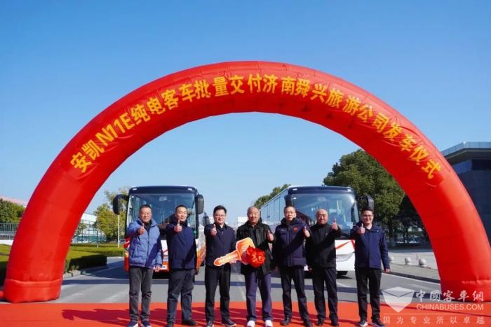 “海右此亭古,济南名士多。”济南,这座充满历史韵味与现代活力的城市,在交通出行领域即将迎来一次华丽升级。2025年2月24日,一批安凯N11E纯电动客车正式交付济南舜兴旅游汽车有限公司,为当地企事业通勤班车领域注入全新活力,开启济南通勤的高效、舒适、绿色新征程。