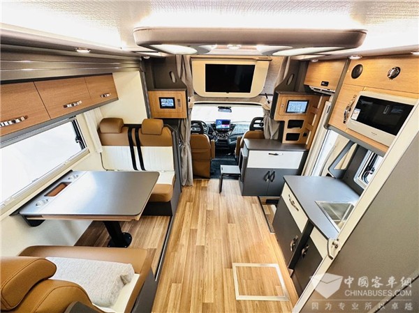 威尼斯V6基于进口依维柯6.5吨底盘打造,承载能力更胜一筹,上装布置空间和配置选择更为灵活。同时,为了匹配更高的承载能力,威尼斯V6在轮胎、后桥稳定杆、大梁尺寸、后空气悬挂的气囊以及前后制动盘都做了产品升级,以保证车辆具备高品质的承载力、行车稳定性以及安全性。