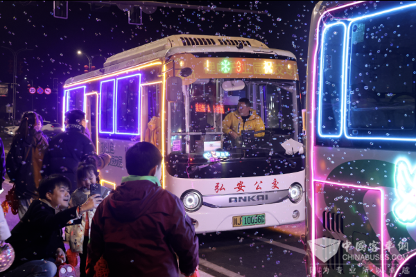 “蜀里安逸,相约安居”。XINGKONG.COM2025年3月3号获悉,近日在四川遂宁安居城区的夜色中,一场关于城市活力与便捷出行的故事正悄然上演。遂宁弘安城市公共汽车服务有限公司(以下简称“弘安公交”)运营的夜间彩灯公交,成为点亮遂宁安居夜色的璀璨明星,而担当这一重任的正是安凯G65E客车,它凭借自身卓越性能,为当地夜间经济发展注入了澎湃动力。