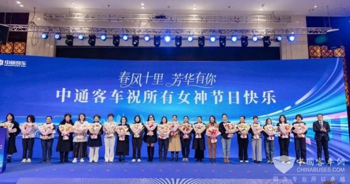 中通客车党委副书记、总经理李鹏程向在场的所有女性嘉宾送上了鲜花和祝福,感谢她们为旅游客运行业发展做出的卓越贡献。带着这份祝福,旅游客运行业的巾帼女将们将继续发挥半边天的作用,为旅游客运行业的高质量发展贡献更多力量。