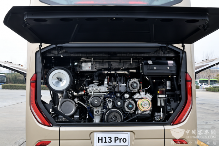 之所以被称为“超大马力旅团客车”,因为H13Pro是国内客车行业中首款搭载潍柴WP12H发动机的车型。该发动机基于全球领先的53.09%热效率平台开发,最大功率达430马力,峰值扭矩2000N·m,且950r/min即可释放峰值扭矩,能够轻松应对山区、高原等复杂路况。