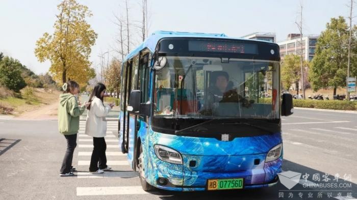 这一幕,发生在停靠株洲职教城某学校站点旁的北斗云尚巴士上。