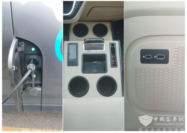 (充电口在车辆左边/前排中间有摆放水杯、手机等小物件的地方/电子设备接口两边都有)