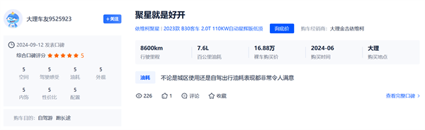 现在,这辆聚星已经跟我跑了半个多月了,真是越开越顺手。上周刚接了个红酒客户,后排空着的地方,直接放上20箱样品,回程还能顺路接孩子放学。话说这车的空间还真够宽敞的,座椅腿部空间也充沛,伸直了都有富裕。侧窗也够大,一整块的看起来非常通透。前两天全家去郊游,婴儿车、露营装备和行李都能轻松塞下,老婆在后排给娃换尿布都不觉得局促。不过要说最让我满意的,还得是每回见客户时的“误会”,人家都以为我换了辆三十多万的商务车,其实算上“春雷行动”的优惠,落地价连这数的一半都不到。